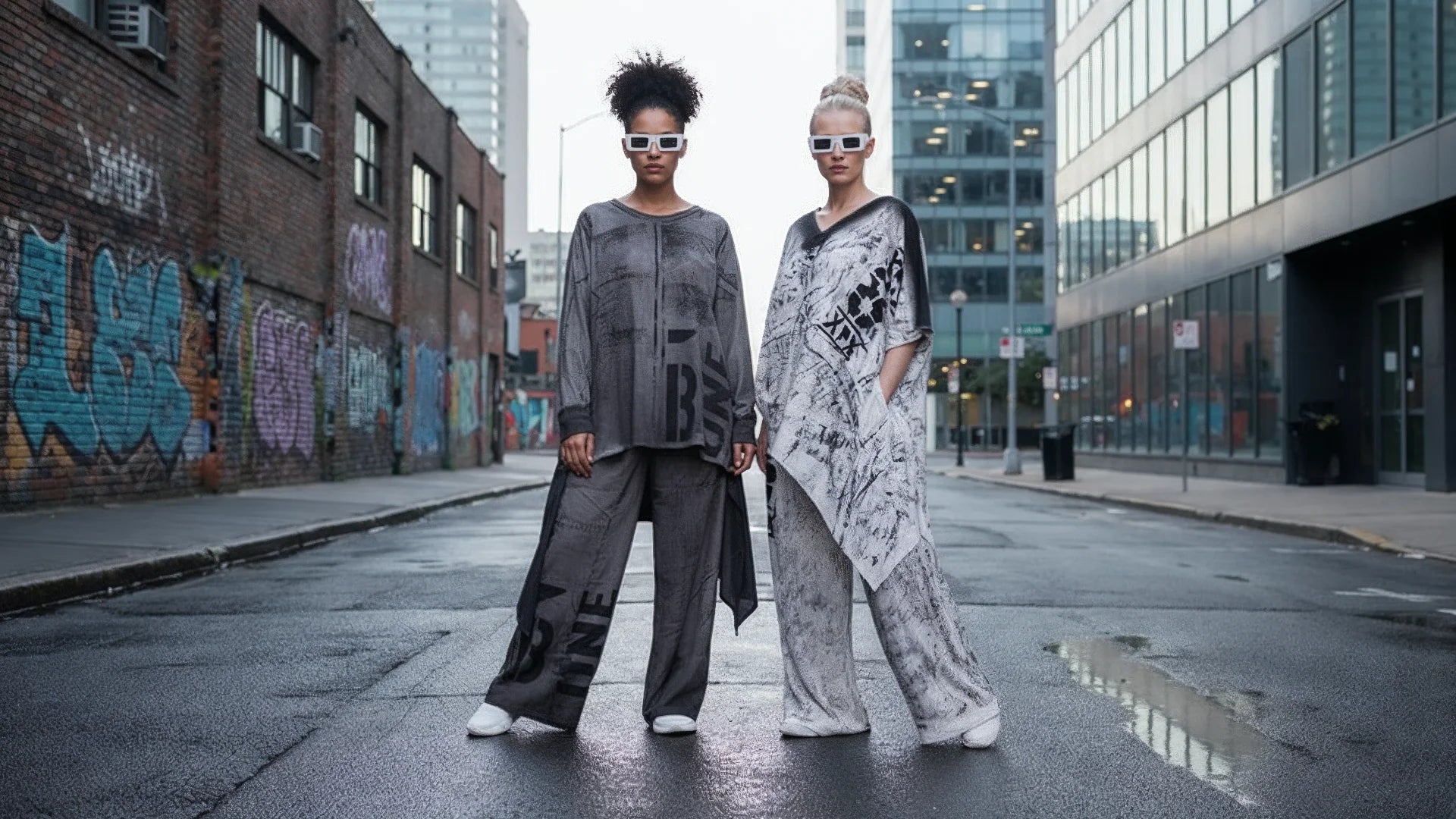 Entdecke die schicke Ballonhose von AKH, die mit ihrem modernen Design und der eleganten Grau-Schwarz-Kombination...