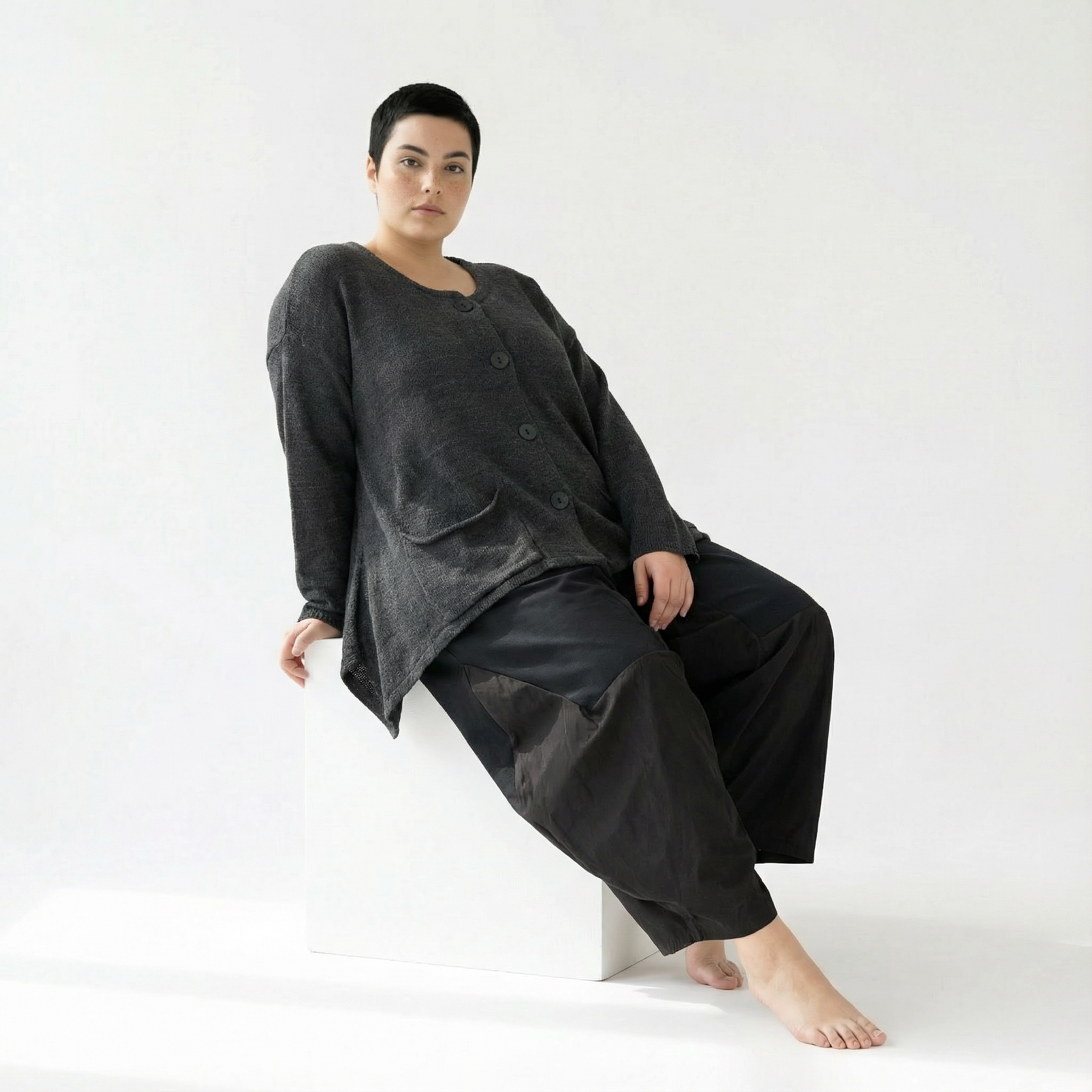 Unser Model Regina trägt Konfektionsgröße 48-52 und ist 166 cm groß. Sie kann fast alle AKH-Modelle wunderbar im Oversize-Stil tragen. Überzeuge dich selbst und schau dir unbedingt weitere tolle Teile von AKH Fashion!
