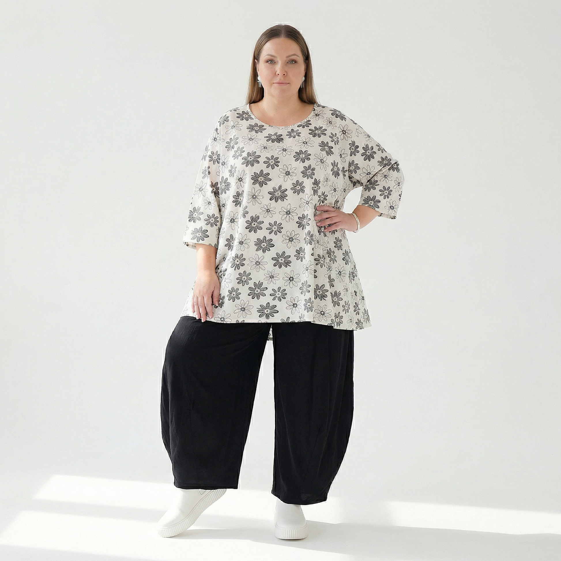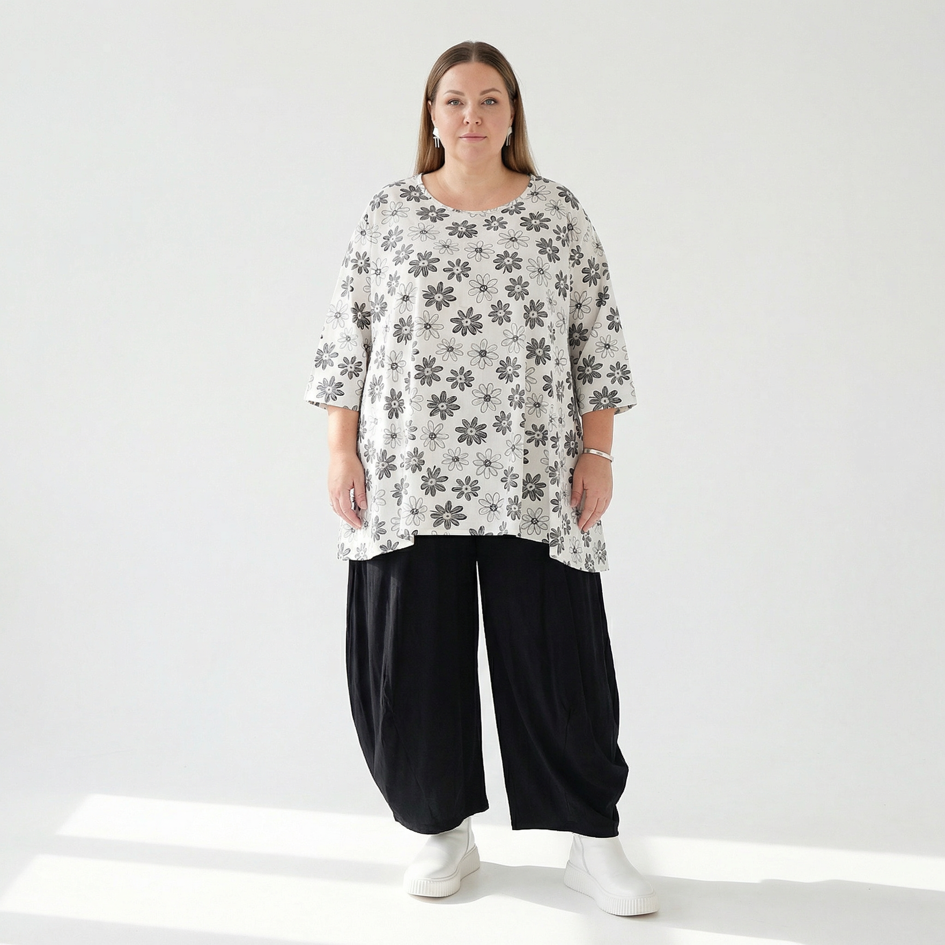 A-Form Bigshirt von AKH Fashion aus Viskose, 1575.00593, Weiß/Schwarz, Blumen, Ausgefallen